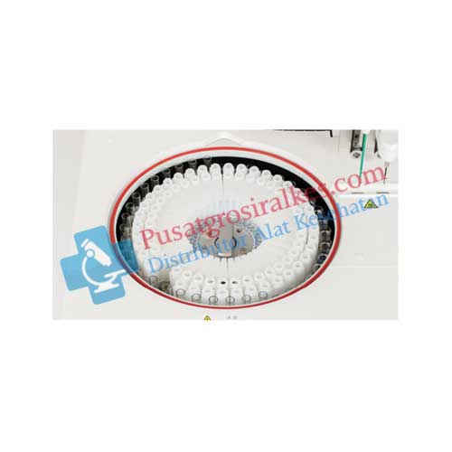 Selain itu, terdapat 40 posisi sampel yang dapat digunakan baik untuk mikro cangkir maupun tabung uji, memberikan fleksibilitas dalam pengambilan sampel.